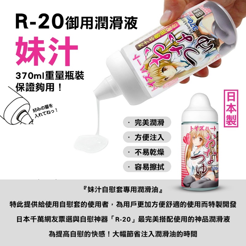 相信我們!R-20內附20ml潤滑液馬上就不夠用,妹汁370ml超大容量撐的久用的盡興!
