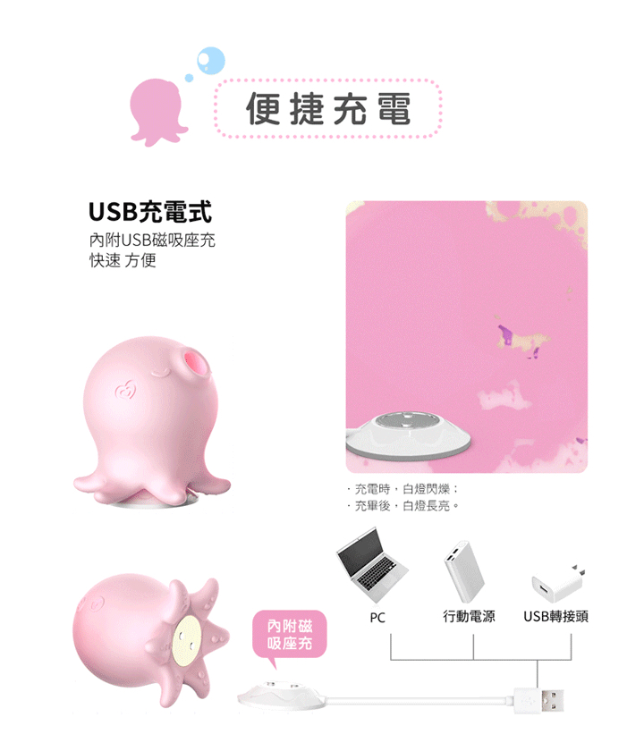 • USB磁吸式座充設計 • 安全矽膠親膚材質無異味