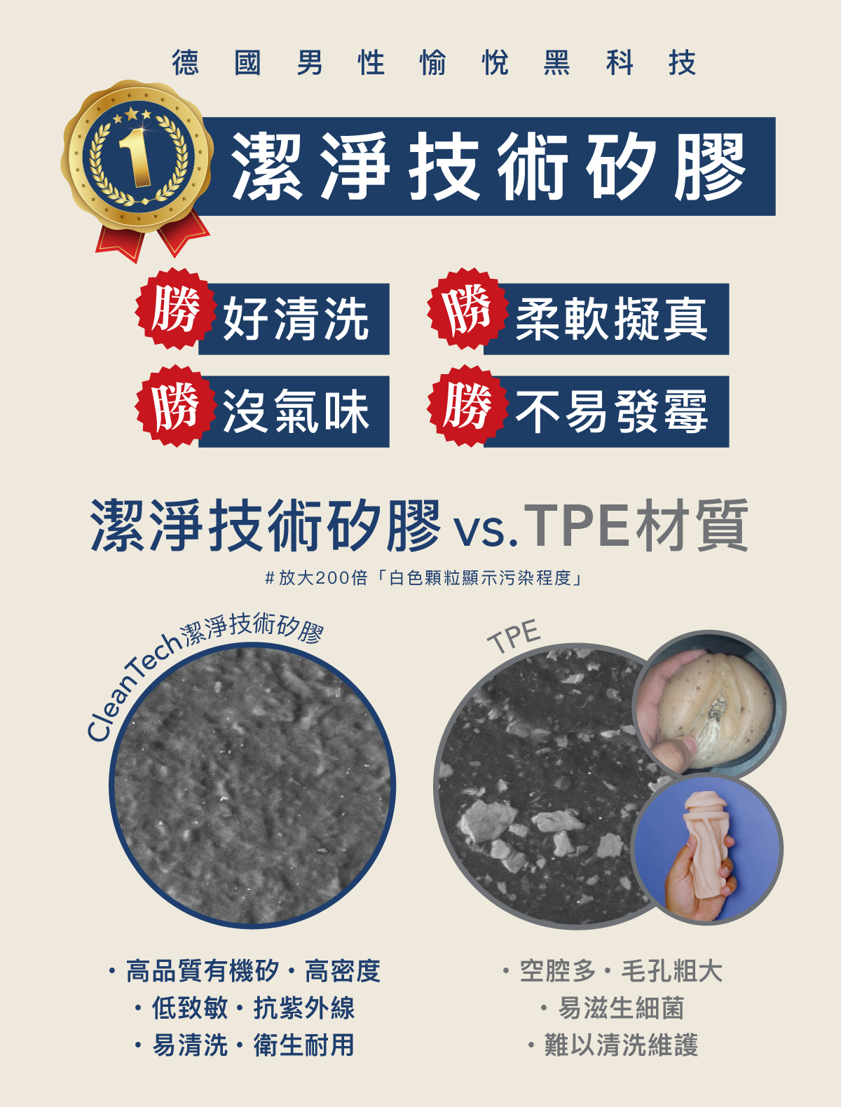 3. CleanTech 潔淨技術矽膠:觸感非常柔軟順滑,高密度和生物兼容,令產品免受病原體和細菌侵襲,且易於清潔!此外,屬低致敏、醫療級,且抗紫外線,比市面上的傳統矽膠更衛生耐用。